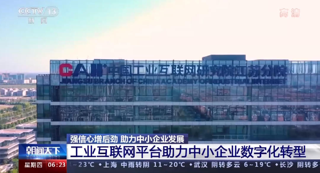 2022年3月17日,央视新闻《朝闻天下》栏目以《强信心增后劲 助力中小企业发展 工业互联网平台助力中小企业数字化转型》为题,对江苏中小企业数字化转型的做法进行报道。在关于工业互联网的报导中,着重提到了苏州吴江“中国工业互联网研究院江苏分院”。 2021年国测(苏州)智慧城市产业化基地引进中国工业互联网研究院江苏分院,相继海尔卡奥斯、徐工汉云、华为云等“双跨平台”,“慧云”、“衍云”、京东方艺云、华衍水务科技等20多家工业互联网领域龙头、知名企业纷纷入驻,为国测(苏州)智慧城市产业化基地汇聚了澎湃动能。