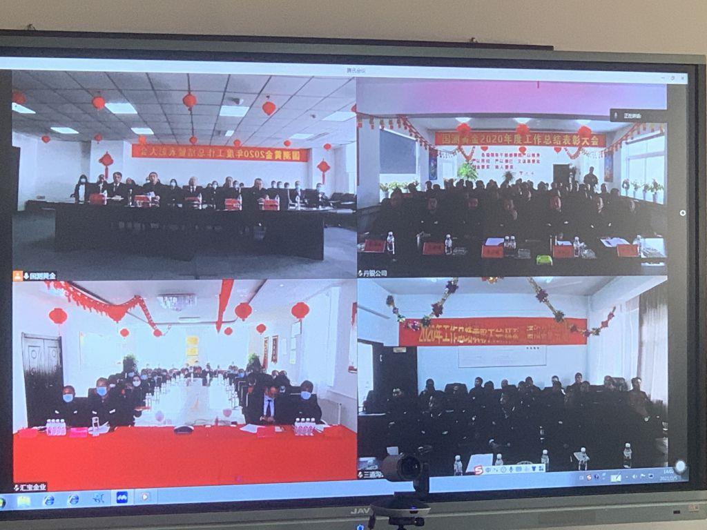 2月5日,辽宁国测黄金采取视频会议方式,组织召开2020年度工作总结暨表彰大会,总结经验,褒奖先进,分析形势,部署任务。会议由李小国总裁主持,栾辉董事长、高伟杰监事长、于宁副总裁、张睿副监事长及总裁助理、各部室负责人、一线生产企业班子成员和生产骨干、受表彰的先进集体和个人代表共计160余人在四个会场同步参加会议。